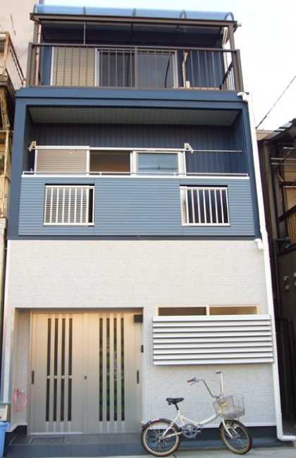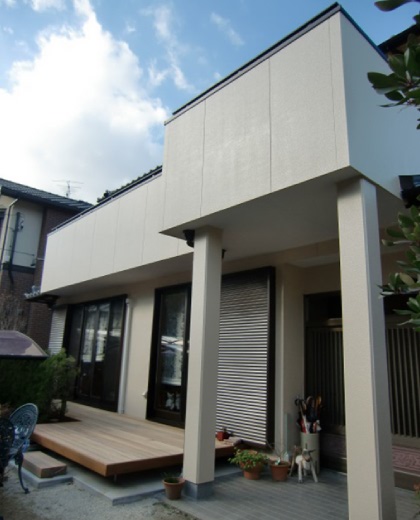 外壁サイディングを上貼り(既設のモルタル外壁上に貼り施工・既設板金の外壁は板金を取り外して施工)