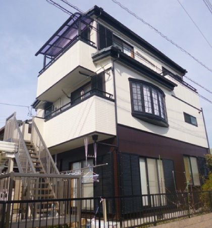 外壁塗装:外階段を取り付けて二世帯に門周りも二世帯タイプに