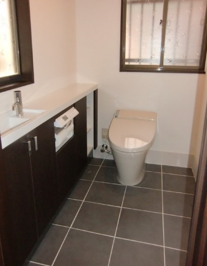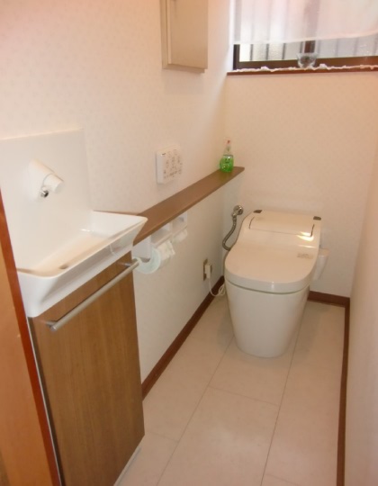 タンクなしのトイレ機器に取り替え。手洗いカウンター新設