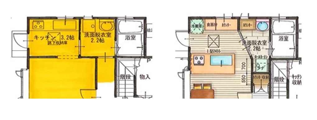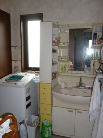 洗濯機の配置を変更し、洗面横にカウンターを取付け、脱衣用の置き場など多目的に使用できます。