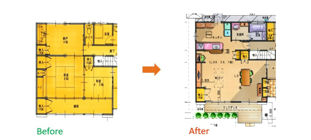 有効活用があまりできていなかった広くて日当たりのよい和室をLDKにしました。