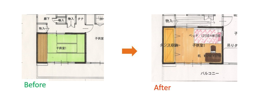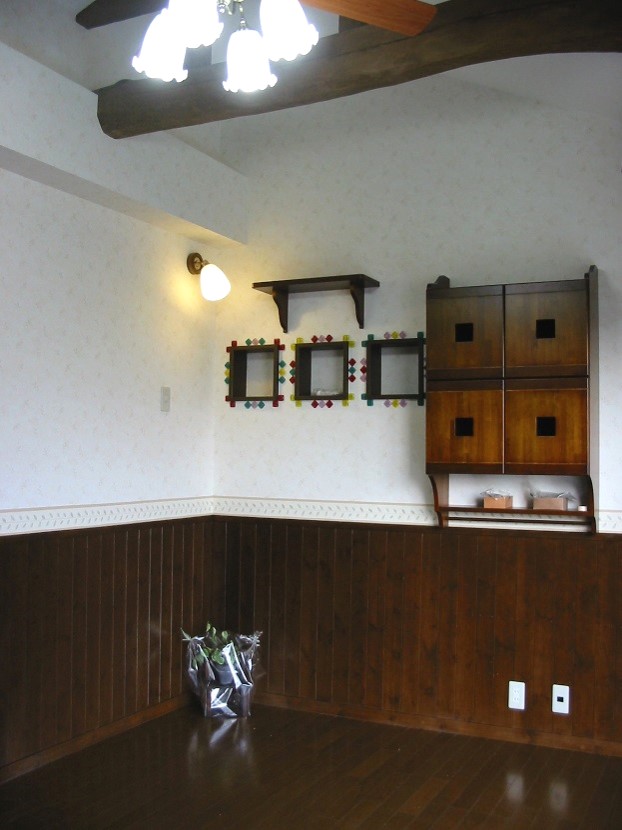 和室だったことを忘れてしまいそうな天井の梁と腰壁、モザイクタイルで飾ったニッチ等、落ち着いた子供室になりました。